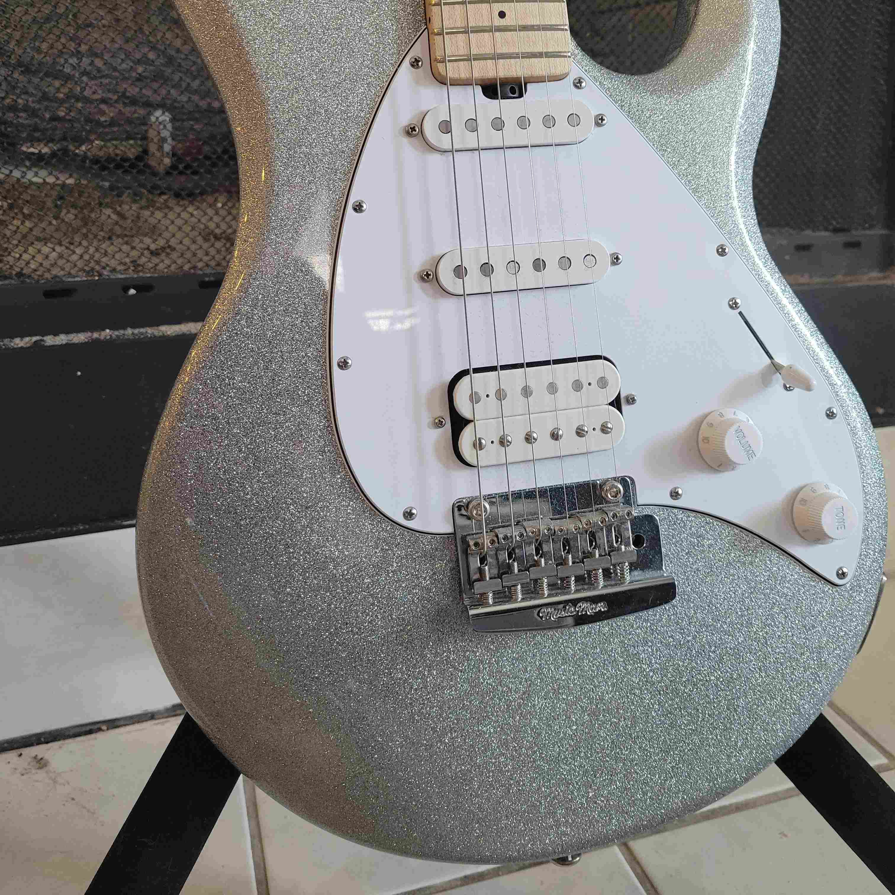 Excellent condition EBMM. Works and plays as it should. Typical music man quality. Rare silver sparkle and matching head stock.