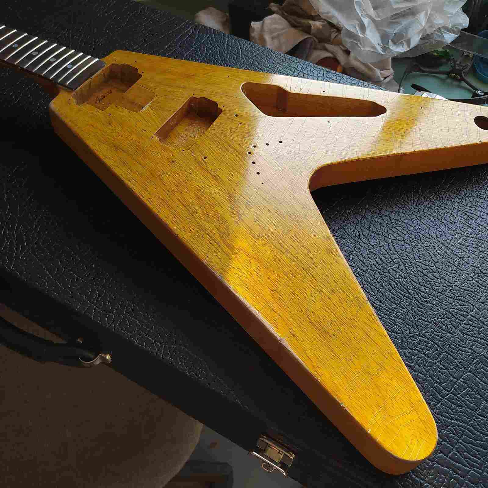 I'm an Italian luthier. I do everything by hands, so any type of customization are possible. I build this guitar on order, I use only first quality Korina white limba solid wood and Brazilian Rosewood for the fingerboard. I don't assemble, so I don't order necks and bodies from external suppliers, I do everything by hand starting from the raw wood, so it is also possible to request special neck profiles or other customizations. The finish is aged nitrocellulose (customer can choose how much aged affect you want). The weight of this one in the photo is 3.8Kg and is well balanced . Also pickups are handwounded by me and are a PAF 59 replica with a value around 7.5/7.6 kOhm neck and 8.5/9.0 kOhm bridge, alnico V magnet. I always do insured shipping, so in case of damage the full amount will be paid by the courier. Paolo Sonicguitars